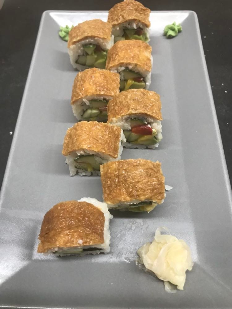 (8 Stk.) Avocado, Gurke, Paprika, Frischkäse ummantelt mit japanischen Tofutaschen – A, G.