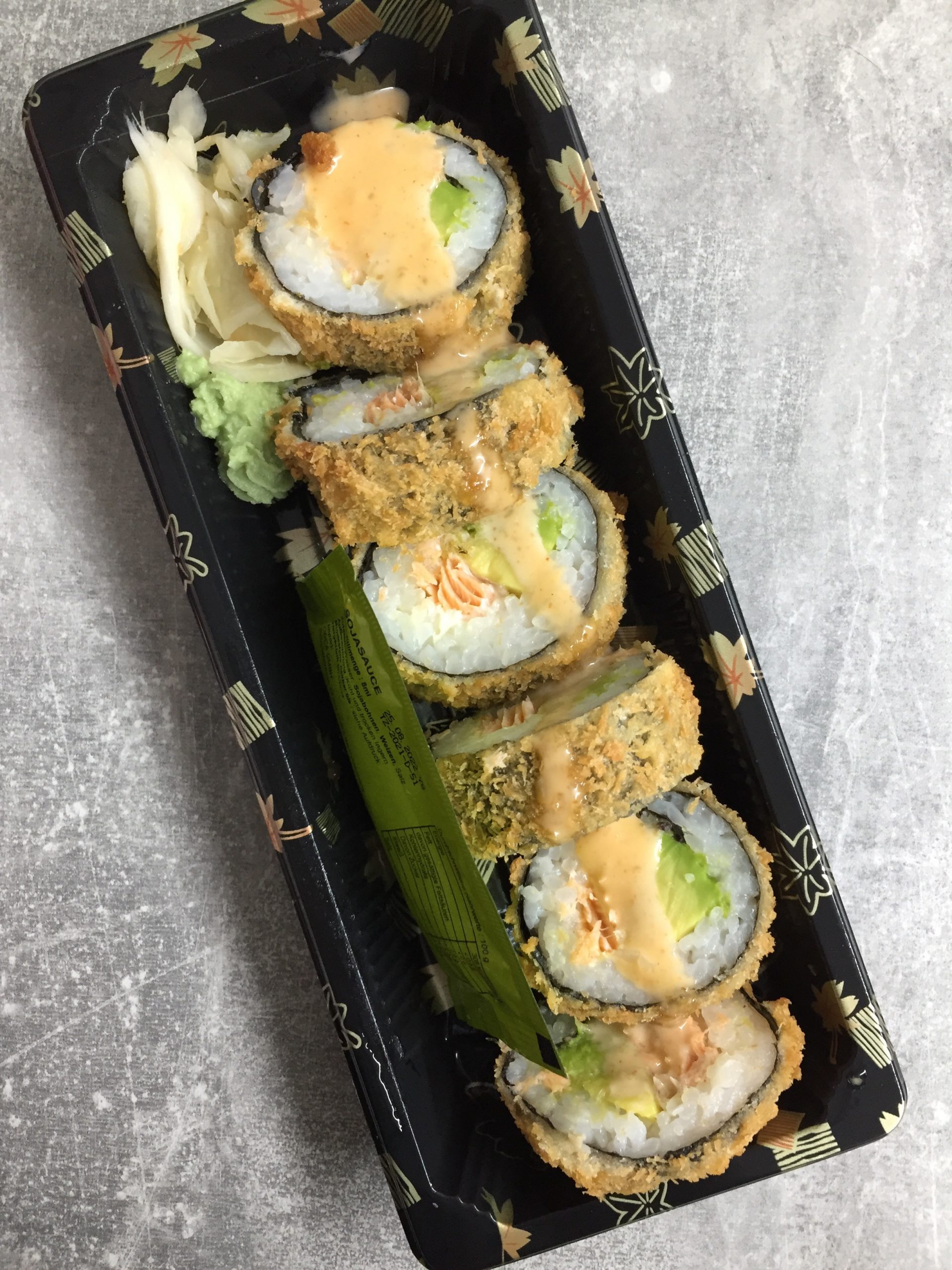 (6 Stk.) Lachs, Avocado, Gurke, Frischkäse und Cocktailsauce – A, C, D, G.